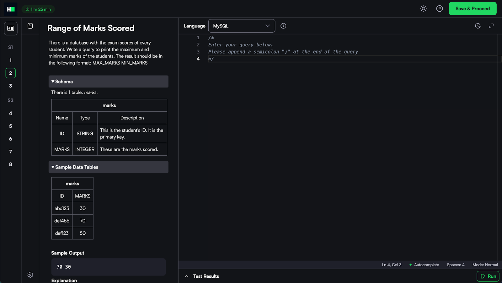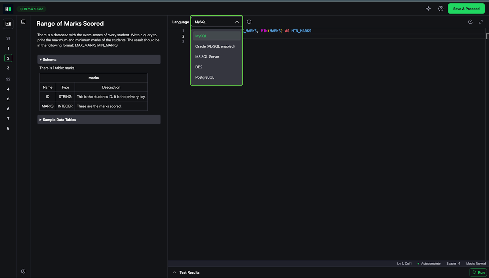 Before attempting a database question on HackerRank, ensure that your environment is set up correctly. If you are new to the platform, take the sample test provided in your invitation email to become familiar with the interface.